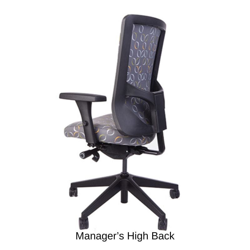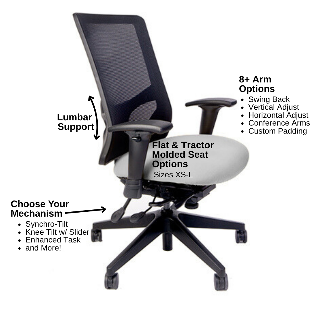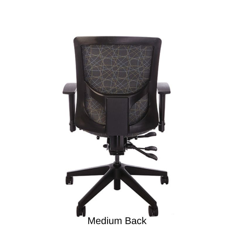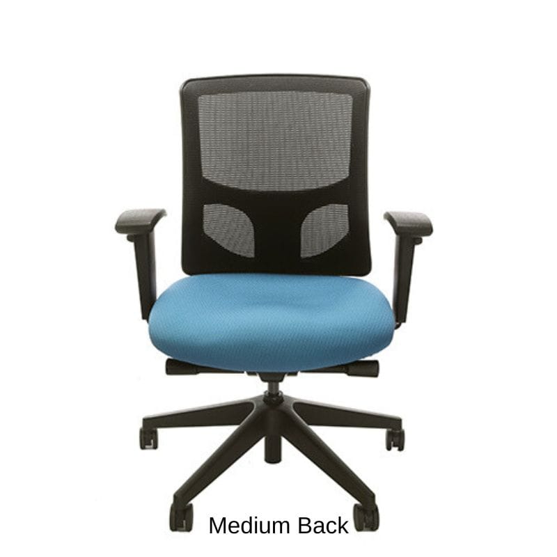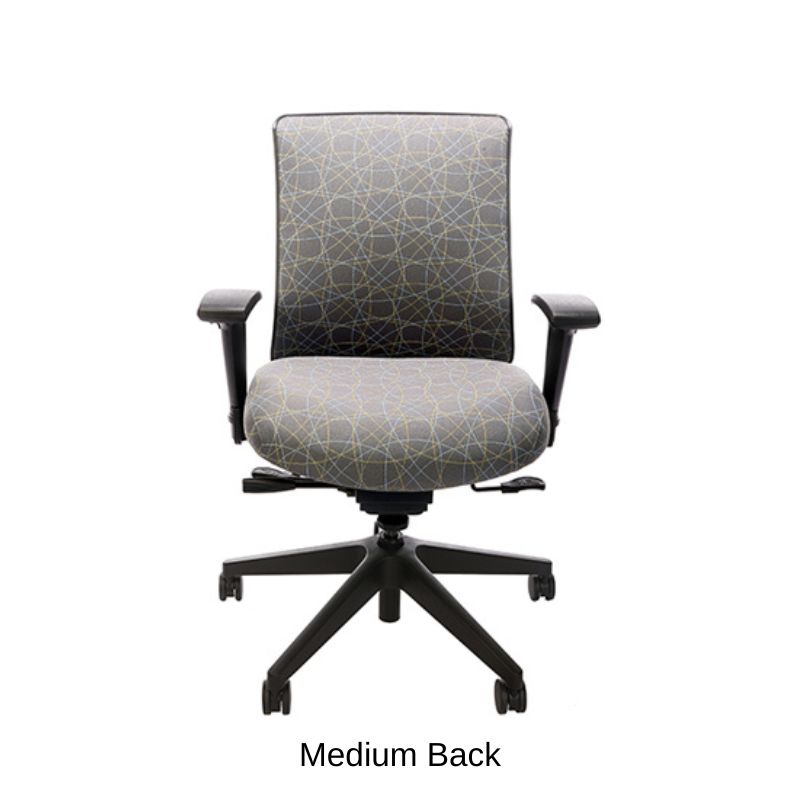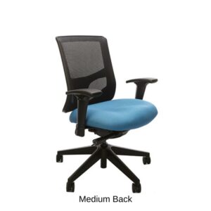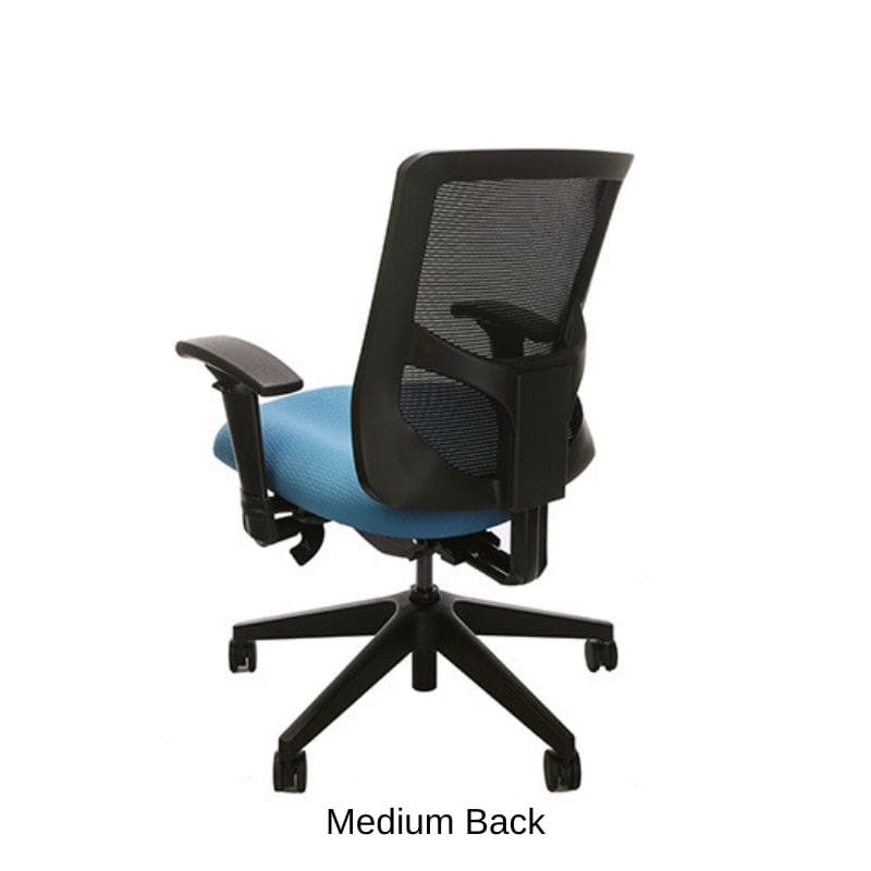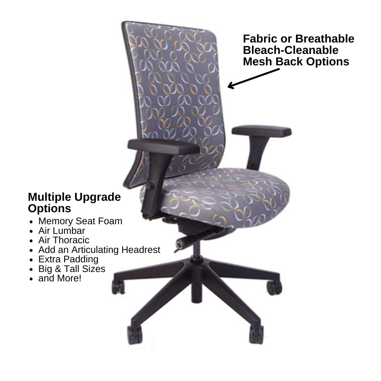 Height adjustable, bleach cleanable, black mesh or fully upholstered back - with 4″ vertical range.